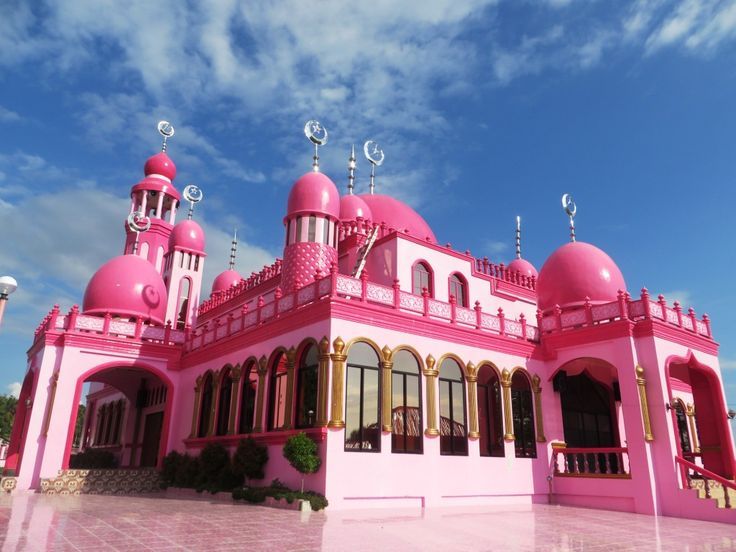 وقد صُبع المسجد باللون الوردي ليرمز إلى السلام والمحبة، وقد بني من قبل العمال المسيحيين ليرمز إلى التعايش بين الأديان.