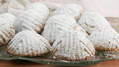يخبز المعمول في الرف العلوي من الفرن مدة عشر دقائق أو حتى يصبح لونه ذهبياً.
