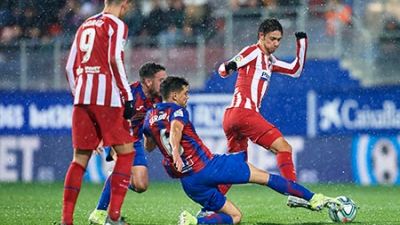 ولعب أتلتيكو، الذي خسر نهائي كأس السوبر الإسباني أمام ريال مدريد بركلات الترجيح الأحد الماضي، دون القائد كوكي بالإضافة للمدافعين كيران تريبيير وخوسيه خيمينيز ولم يسيطر مطلقاً على المباراة التي أقيمت وسط الأمطار باستاد إيبوروا.