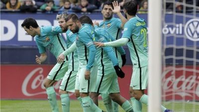 سحق برشلونة مستضيفه أوساسونا بثلاثيةٍ دون رد في المباراة التي جرت على ملعب بامبلونا لحساب المرحلة الـ 15 من الدوري الإسباني.