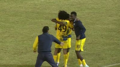 لاعبو التعاون يحتفلون بالهدف الثاني