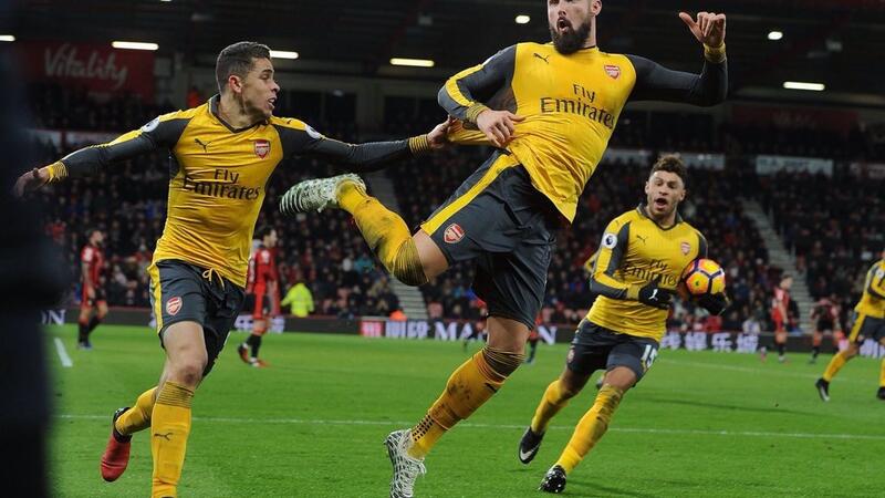 جيرو يحتفل بهدفه على طريقته الخاصة مقلداً الهدف الذي سجله الأحد الماضي