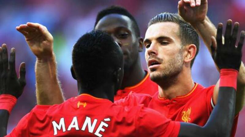 جوردان هندرسون (يمين) يهنىء زميله ماني بالهدف الأول