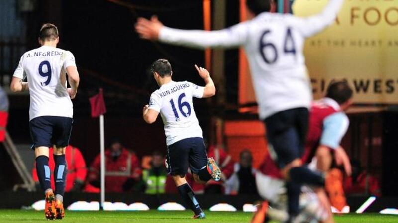 لاعبو سيتي يحتفلون بهدف أغويرو الأول
