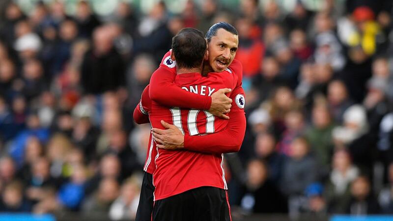 إبراهيموفيتش يتلقى التهنئة من واين روني