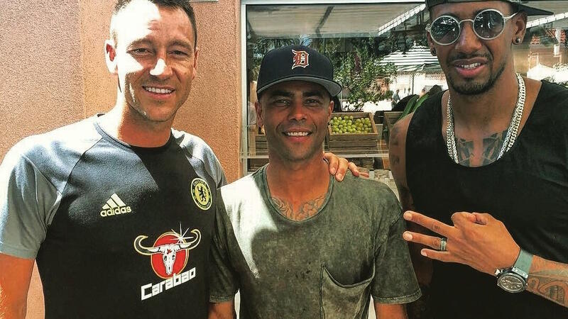 ChampionsLeague@ المدافعان الإنجليزيان جون تيري (يسار) وآشلي كول (وسط) رفقة المدافع الألماني جيروم بواتينغ خلال تواجدهم في لوس أنجيليس الأميركية.