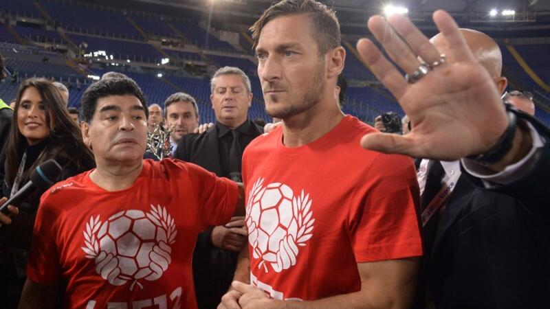 عبر فرانشيسكو توتي قائد روما، عن سعادته باللعب أخيراً إلى جانب دييغو أرماندو مارادونا أسطورة كرة القدم العالمية، وهو ما سيجعله سعيداً عندما يقرر إنهاء مسيرته.