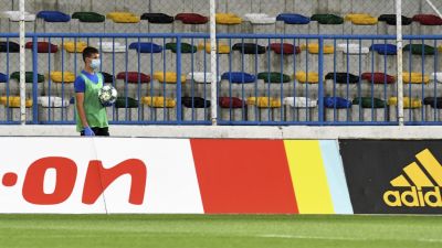 جامع كرات يرتدي كمامة وقفازات خلال مباراة في كرواتيا