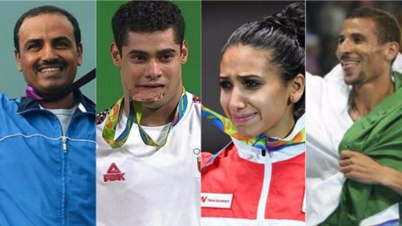 التونسية إيناس البوبكري بسلاح الشيش ومواطنتها مروى العمري بالمصارعة وزن 58 كيلوغراماً، ومواطنهما أسامة وسلاتي بالتايكواندو وزن تحت 80 كيلوغراماً”.