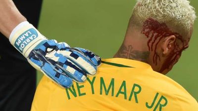 وحاول البوليفي استخلاص الكرة من المهاجم البرازيلي خلال إحدى لقطات المباراة التي جمعت الفريقين ضمن التصفيات المؤهلة إلى كأس العالم، لكن صاحب الـ 24 عاماً تعرض لضربة بالكوع أغرقت وجهه بالدماء.