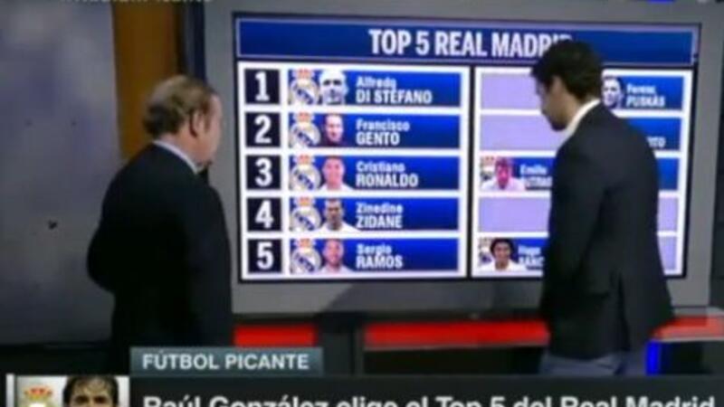 اختار نجم ريال مدريد السابق راؤول غونزاليس أساطير النادي الملكي حسب تأثيرهم في السنوات التي قضوها مع الفريق، فأثارت خياراته بعض الجدل عبر مواقع التواصل الاجتماعي، خاصة حينما استثنى نفسه من القائمة ولم يضع كريستيانو رونالدو سوى في المركز الثالث.