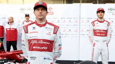 وأزاح كيمي رايكونن وأنتونيو جيوفيناتزي، سائقا ألفا روميو، الغطاء عن السيارة الجديدة للفريق قبل أقل من ساعة من انطلاق الاختبارات.