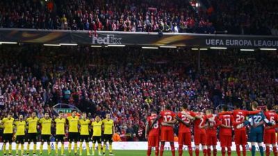 وقام الجمهوران بإنشاد الأغنية الشهيرة "لن تسير وحدك أبداً" You will never walk alone معاً، وهو ما جعل المدرجات تتحول إلى مسرح مميز اختلطت فيه الأحاسيس قبل يوم واحد من الذكرى الـ 27 لمأساة هيلزبره.