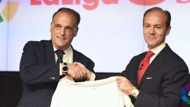وتم تقديم هذه الرعاية والتي ستغير من اسم مسابقة الدوري الإسباني إلى لا ليغا سانتاندير بداية من الموسم القادم، وقال تيباس رئيس الرابطة في مؤتمر صحفي: "نحن متحمسون، الراعي الجديد يلبي جميع المتطلبات التي كنا نبحث عنها في هذه الاتفاقية".