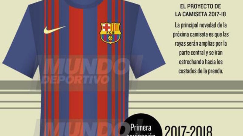 وسيحتفظ برشلونة وفقاً للقميص المسرب بالألوان المميزة لقميصه الأحمر والأزرق، وذلك بخطوط طولية يقل سمكها تدريجياً من صدر القميص إلى جانبيه.