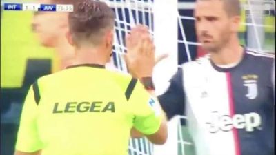 حدثت الواقعة في الدقيقة 76، أي قبل وقت قصير من هدف فوز يوفي عبر غونزالو هيغواين، عندما كان يطالب لاعبو إنتر بطرد إيمري تشان لاعب وسط يوفي، لكن الحكم رفض طرده ثم صافح بونوتشي بحرارة.