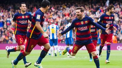 وقالت صحيفة "سبورت": "التحليق نحو لقب الليغا" مع صورة كبيرة للنجم ليونيل ميسي محتفلاً بهدفه في مرمى إسبانيول.