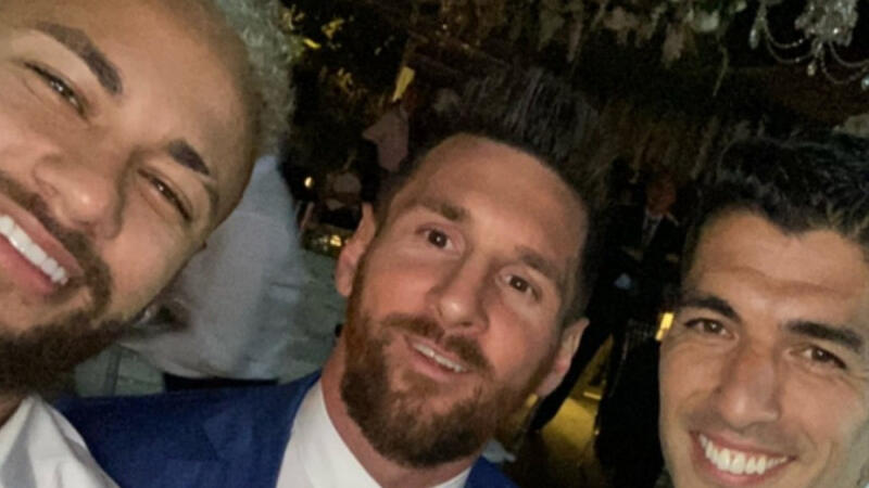 التقى نيمار دا سيلفا مهاجم باريس سان جيرمان، صديقيه ليونيل ميسي ولويس سواريز نجمي برشلونة، خلال حفل تجديد زفاف النجم الأوروغوياني في بلاده.