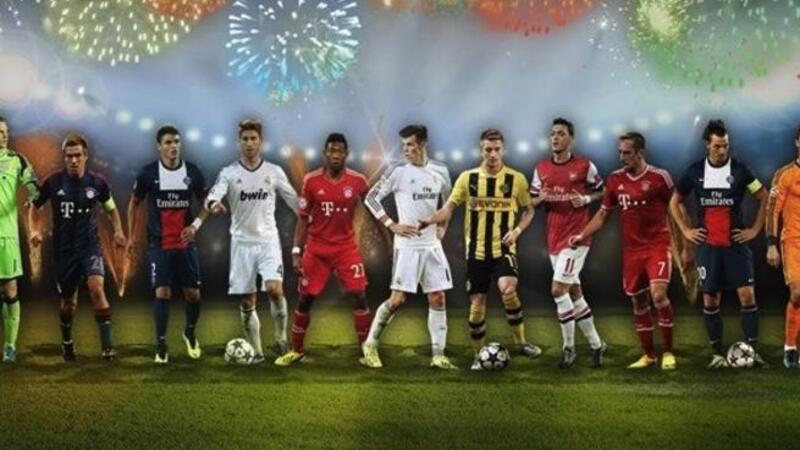 مانويل نوير، فيليب لام (بايرن ميونخ) وتياغو سيلفا (باريس سان جيرمان) وسيرخيو راموس (ريال مدريد) وديفيد آلابا (بايرن ميونخ)، غاريث بايل (ريال مدريد) وماركو رويس (بوروسيا دورتموند) ومسعود أوزيل (آرسنال) وفرانك ريبيري (بايرن ميونخ)، زلاتان إبراهيموفيتش (باريس سان جيرمان) وكريستيانو رونالدو (ريال مدريد).