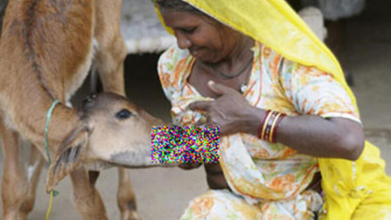 فالهندية "شوتي باي" في إقليم راجستان الهندي اصبحت محط اهتمام وتقدير لأفراد قريتها ومصدر فرجة للسياح الأجانب، وذلك بعد أن أصبحت أما بديلة لعجل تفتقد أمه البقرة لحليب كافي له.