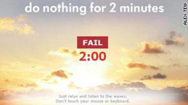 لا تبدو دقيقتان مدة طويلة إن كنت تسلق بيضة، أو تتنزه مثلا، ولكن في عصر المدونات، وتويتر وفيسبوك، فإن تلك المدة تبدو طويلة جدا إذا أردت أن تفعل "لا شيء،" خاصة عندما تحدق بشاشة كمبيوتر وأصابعك على "الماوس."