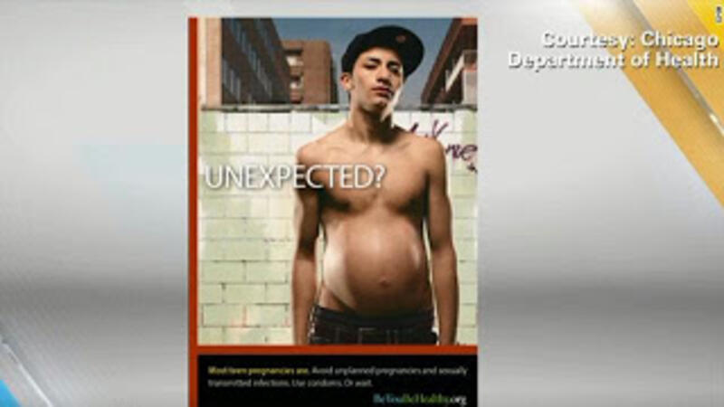 وظهرت الملصقات الإعلانية "المثيرة" والتي يظهر فيها شباب وقد انتفخت بطونهم كاالنساء الحوامل تماماً، في كافة وسائل المواصلات العامة بشيكاغو.