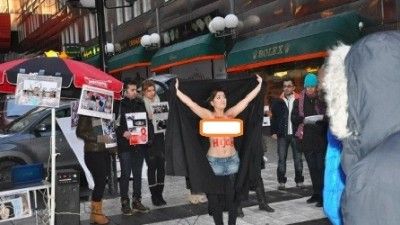 قامت ناشطات إيرانيات بتعرية صدورهن في وقفة احتجاجية أجرينها بالعاصمة السويدية ستوكهولم، تعبيرا عن معارضتهن للحجاب الذي ترتديه النساء في بلدان العالم الإسلامي.