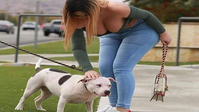إجتاحت مواقع التواصل الإجتماعي صورة لإمرأة أمريكية وهي تقود زوجها بواسطة جنزير، كالكلب، وهو يحبو ورائها.