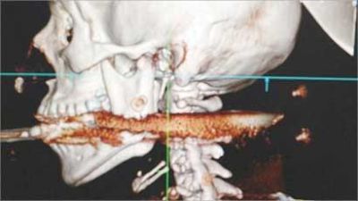 وأوضح الجراح الذي استخرج الرمح بمساعدة فريق طبي أن «الأداة عبرت البلعوم وكسرت ضرسين، وعلقت في الفقرة الأولى من العنق، وكانت على وشك الإصابة بالشلل الرباعي أو الموت».