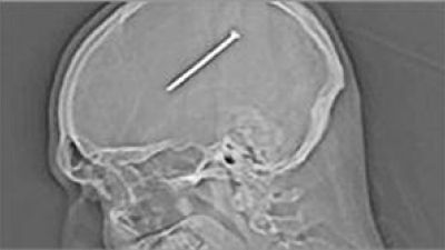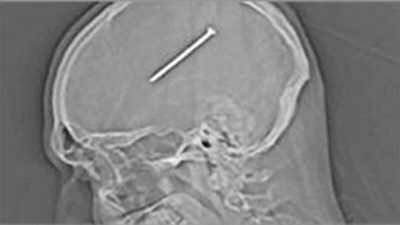 تمكن جراحون من اخراج مسمار بطول 8.25 سنتيمتر من وسط دماغ شخص من ضواحي شيكاغو، ضرب نفسه عرضا به.