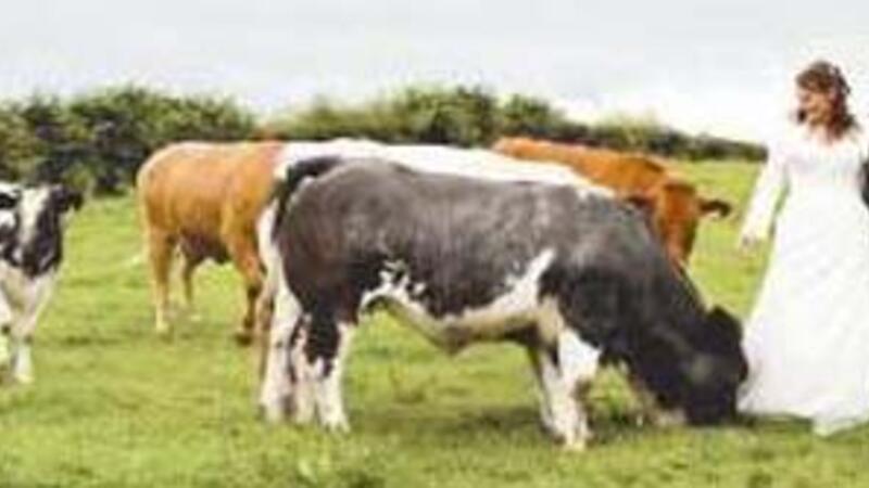 وسط المراعي الخضراء، وعلى إيقاع خوار الأبقار، أقام عروسان بريطانيان حفل زفافهما الذي جاءت أجواؤه معبرة عن عشقهما المشترك لتربية الحيوانات.