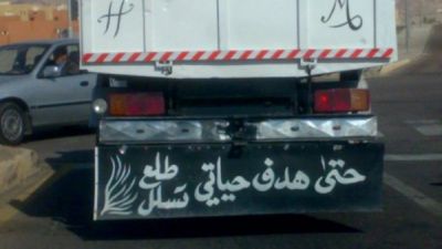 ومن العبارات اللا فتة التي تدل على خلق رياضي قول سائق:" تحياتي لمن دمر حياتي"، واخر متاثر بموجات سرقة السيارات:" احترامي للحرامي.. أبواب السيارة مفتوحة ما في داعي لكسر الزجاج".