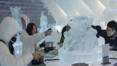 يحظى "مطعم جليدي" بشعبية كبيرة في الصين، إذ يقدم في أجواء باردة جدا طبق طعام يدعى "هوه قوه"، أو "الوعاء الساخن".