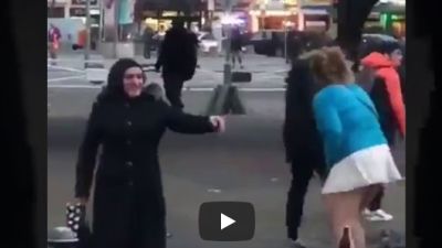 نشر رواد مواقع التواصل الاجتماعي مقطع فيديو يظهر فيه تعرض امرأة مسلمة كانت تسير في احد شوارع بلد أوروبي يعتقد انه المانيا لمحاولة خلع حجابها من قبل ” مخنث”.