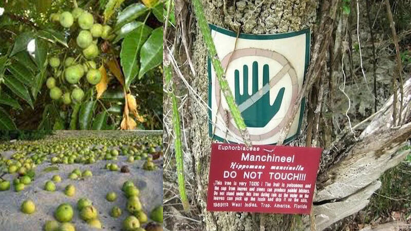 " أخطر شجرة على وجه الأرض " .. شجرة تسبب العمى وقد يكون الوقوف تحتها وقت المطر سبباً في قتلك إنها شجرة " المنشينيل "