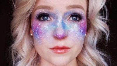 ابدئي باستخدام كريم الأساس وكريم اخفاء العيوب كقاعدة، ثم قومي باضافة ظلال العيون والوميض بظلال الأرجواني والأزرق والبنفسجي المستوحى من لون السماء كخلفية. يمكنك الان القيام بدمج النمش مع ظلال العيون المكملة، أو إضافة النجوم والمذنبات والشهب لها. للمزيد من الافكار اتبعي هاشتاغ: #GalaxyMakeup