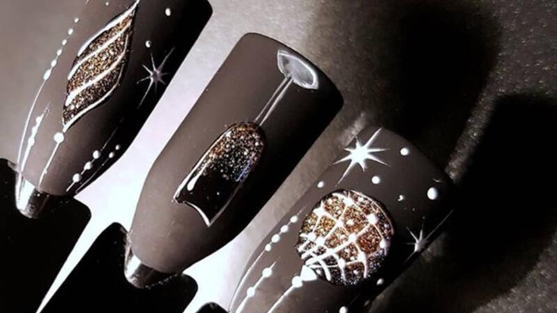 طلاء أظافر ملون (بيج، اسود، بيج)
