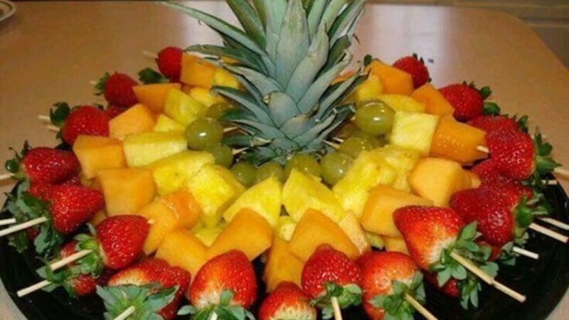 تقطع الفواكه الى احجام متساوية صغيرة ومناسبة للاطفال.