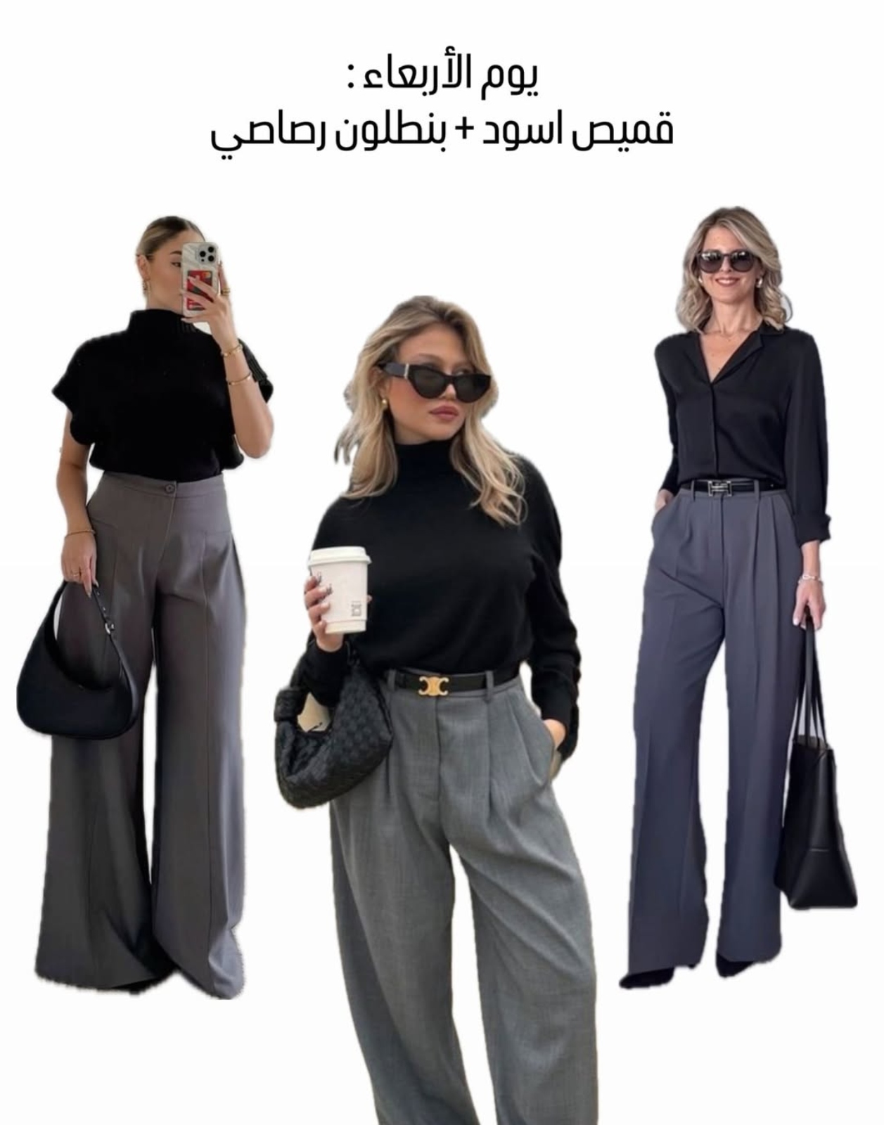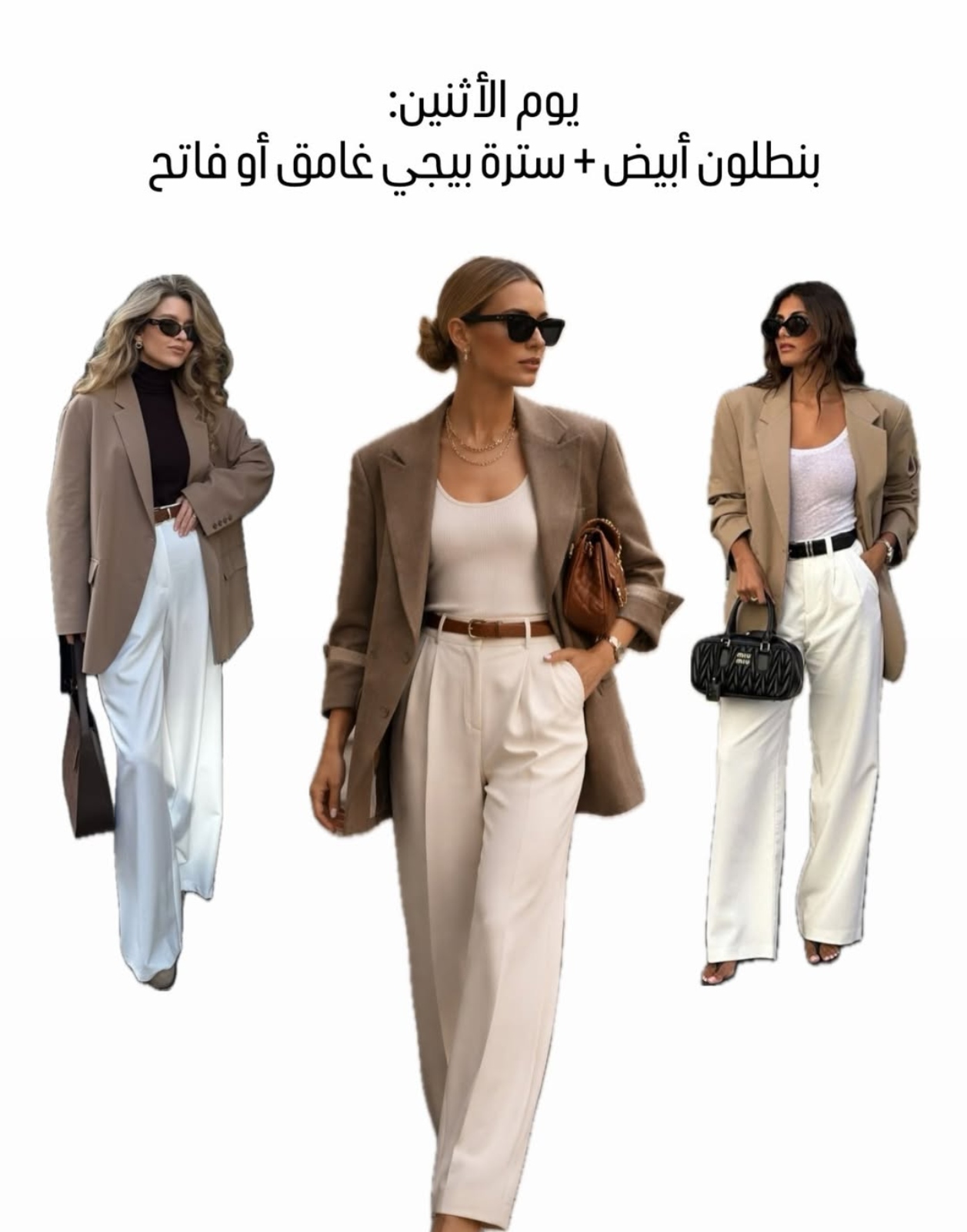 • نسّقي حسب طبيعة عملك؛ إذا كان رسمي جدًا اختاري بدلات كاملة، وإذا كان مرن أكثر يمكنك اعتماد ستايل كاجوال شيك.