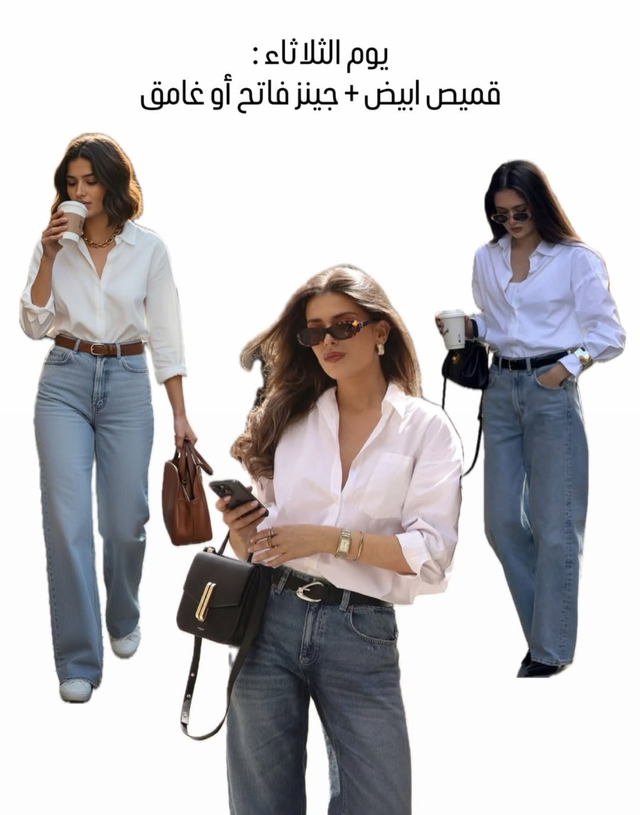 • استخدمي الإكسسوارات بشكل خفيف مثل ساعة أنيقة أو أقراط صغيرة لإضافة لمسة أنثوية دون ازدحام.