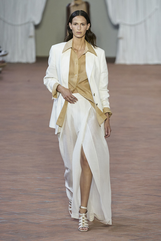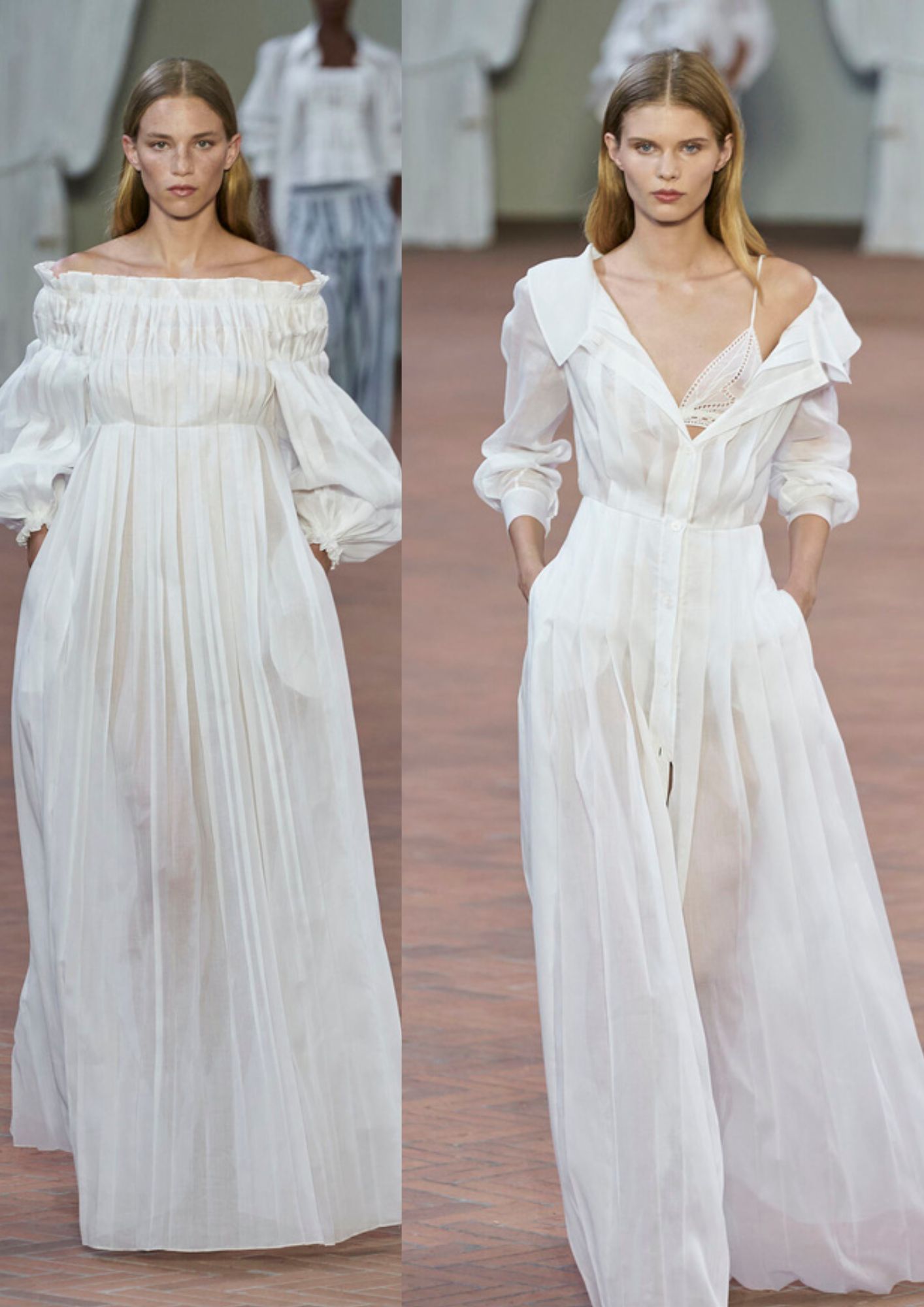 في اليوم الأول من أسبوع ميلان للموضة المقام في العاصمة الإيطالية التي تحتفي بالحياة والنقاء والألوان الحيوية والناعمة، تختار المديرة الإبداعية للدار الإيطالية ألبيرتا فيراتي، أن تحتفل بأناقة وجمال اللون الأبيض عبر سلسلة من تصاميم الملابس الجاهزة لموسم ربيع وصيف 2024 بباقة من الملابس الاكثر رفاهية وحيوية وأكثر تعبيرا عن اناقة الدار الإيطالية وأسلوبها في تقديم الملابس التي تعبر عن رفاهية ومتعة الحياة الصيفية وخصوصا تلك التي تقضيها في الريف الإيطالي.