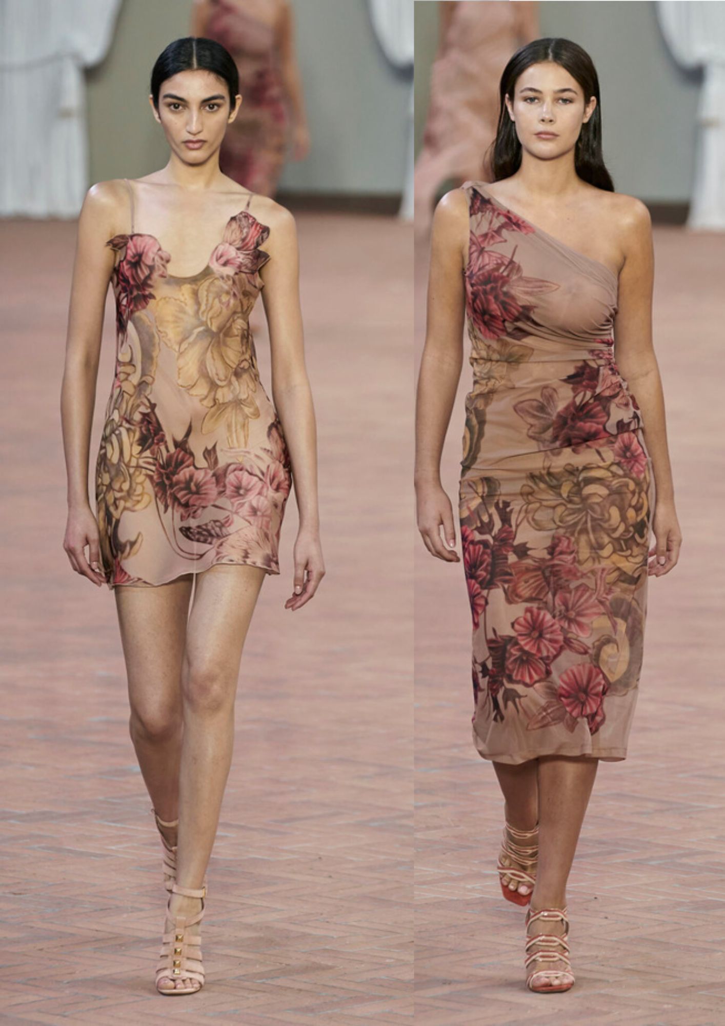 رومانتيكية وحسية، هكذا توصف الفساتين التي قدمتها دار أزياء ألبيرتا فيراتي، حيث قدمت اكثر من خمسة إطلالات أنيقة بصيحة الاقمشة المطبوعة برسومات الورود الأنيقة والرومانسية بألوان بين الأرجواني العميق والأحمر الداكن والبيج اللافت، كما رافقت هذه الطبعات الأنيقة القماش الذي جاء باللون ال"بيج" المتوسط ليكون مزيج راقي وأثيري.