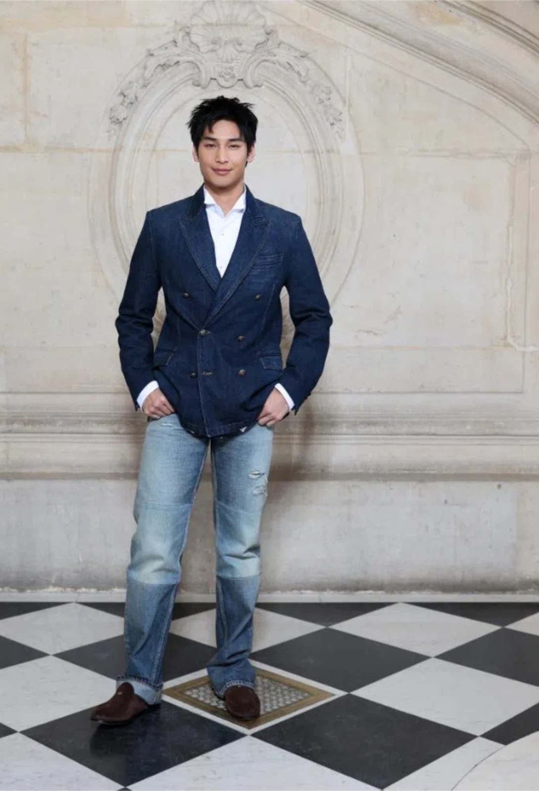 • وين ميتاوين (Win Metawin): خلال عرض Prada، تألق بإطلالة جريئة مستوحاة من شوارع ميلانو، معطف ترانش أحمر، قميص أبيض بلا أكمام، بنطال جملي وحذاء أسود.
