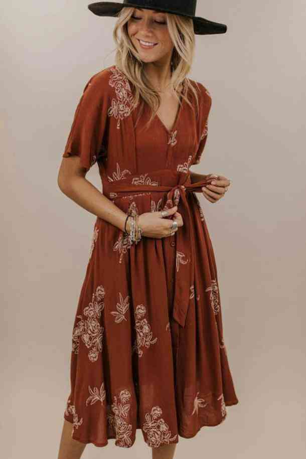 إطلالة غاية في الجاذبية مفعمة بالأنوثة تتميز بألوان دافئة تبرز دفء شخصيتك، كما تعبر أيضًا عن شخصيتك الواثقة.