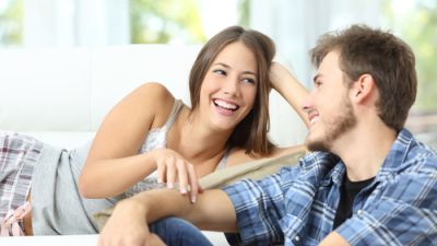 4- إجلسي على رجليه عندما يكون مستلقيًا أو جالسًا على الكرسي، تصرّفي كطفلة صغيرة ولا تنسي الإبتعاد عن التصنّع لأنك لن تنجحي في الدلع حينها.