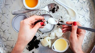 ملاحظة: يمكنك إضافة بقايا القهوة المطحونة الى المقشر لعلاج مشكلة السيلوليات.