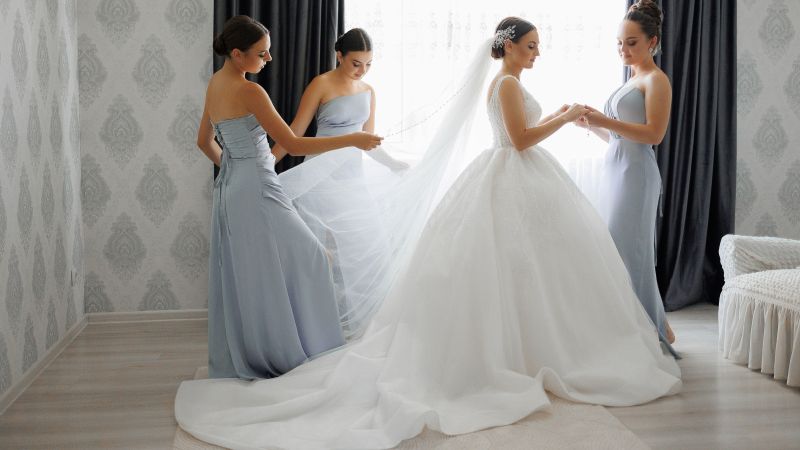 • إذا كان فستان الزفاف مزخرف فمن الأفضل اعتماد طرحة ناعمة لإطلالة متوازنة.