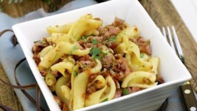 أطباق صحية: باستا بالسجق والجبن والطماطم المجففة