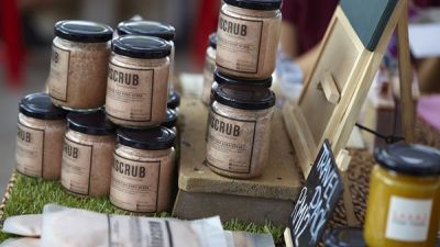 معظم المقشرات تستخدم السكر ولكن هذا المقشر المطهر مصنوع من الملح ، واللافندر .