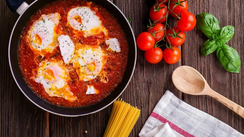 بيض مقلي بالفلفل الحار والطماطم